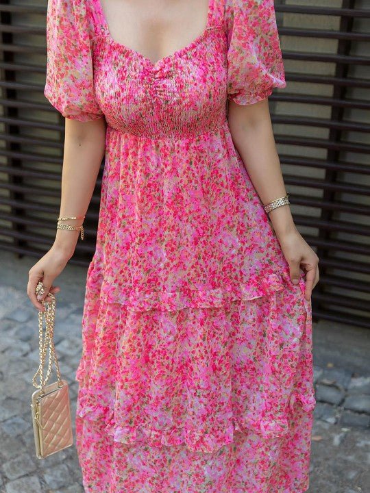 • Pink floral print Fit and Flare maxi dress