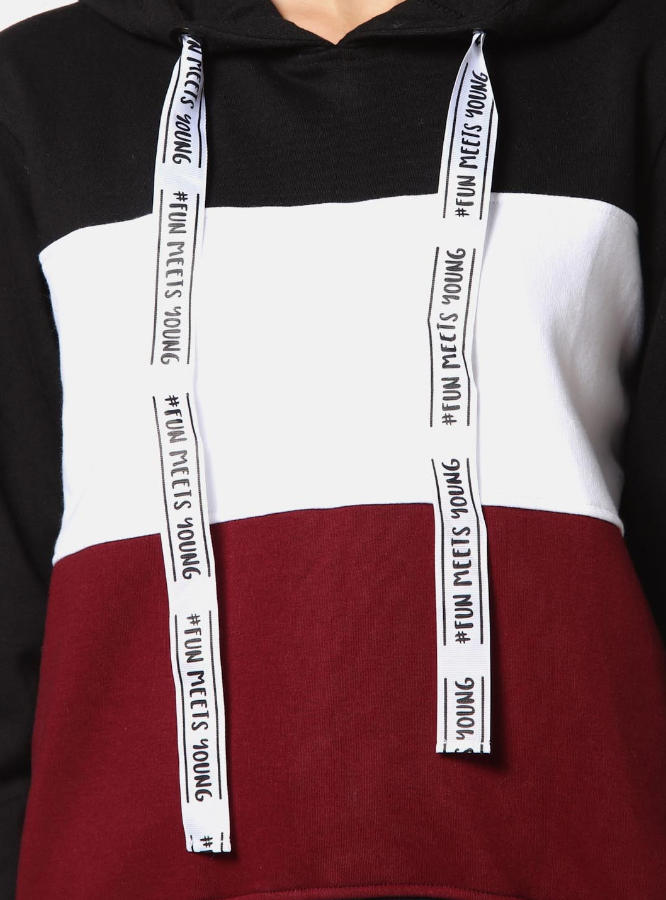 Be the first to review “Women Black & White Colourblocked Hooded Sweatshirt”